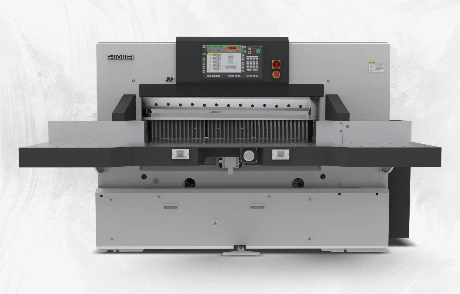 The Guowei Model 137S is a high-performance, industrial guillotine/ paper cutting machine built for large-format cutting jobs, precision, and reliability. Suitable for printing houses, packaging plants, book breinding/finishing units, and other applications where large sheets and high throughput are needed. It combines advanced hydraulic drive systems, servo controls, computerized backgauge, and strong safety features.
