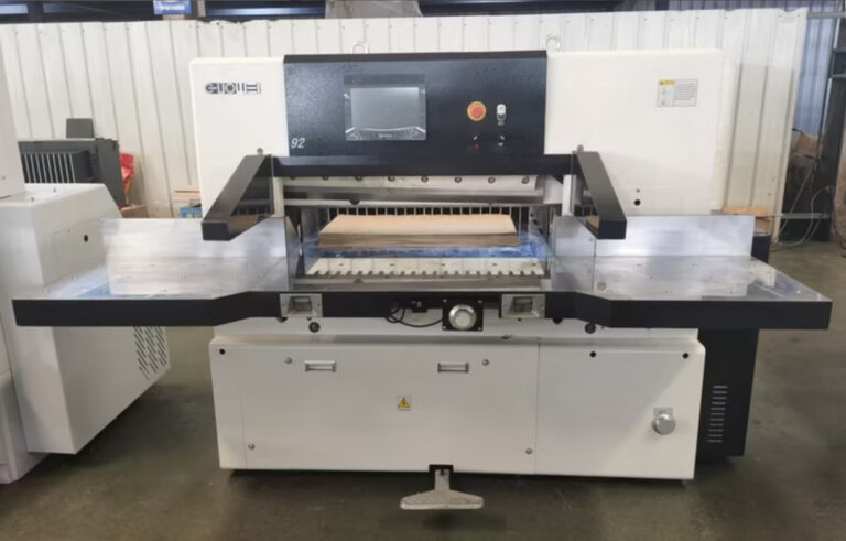 The Guowei 92 is the ideal guillotine for industrial finishing — combining precision, durability, and programmable efficiency. With its high-cutting width, deep cut capacity, and intuitive touch-screen control, it delivers consistent output even in demanding production environments. Safety and low maintenance are built in, assuring long service life and reliable performance.